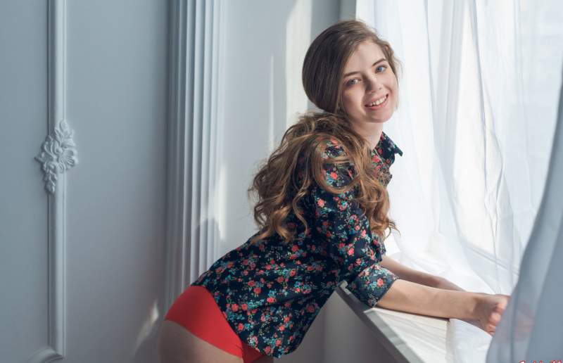 Красавица соблазнительно позирует, надев эффектные красные трусики, показывая свою подтянутую грудь. Эта красотка достойна оценки на 5 баллов за прекрасные сосочки! На одной из картинок также была показана милая киска. Глазами гадалки, она тоже является красивой и молодой на 18 лет.