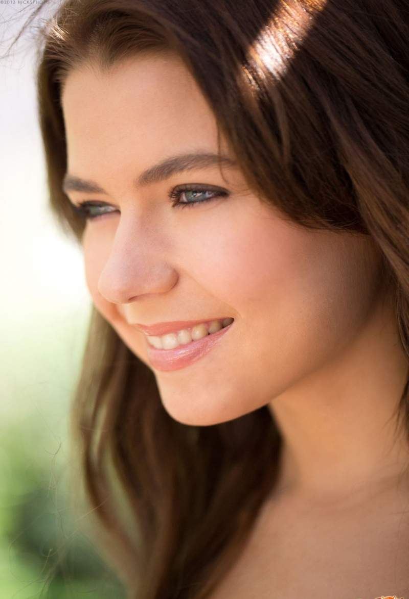 Шатенка с пышной грудью обнажила гладко выбритую промежность.
