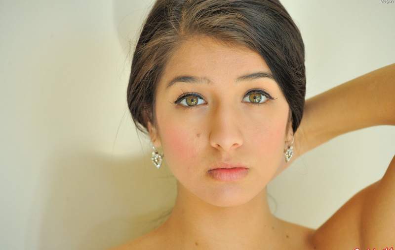 Эта стройная брюнетка с очаровательной улыбкой демонстрирует свою фигуру.