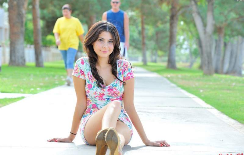 Молодая женщина, едва достигшая восемнадцати лет, шла по улице в коротком облегающем платье, под которым не было нижнего белья. Она привлекла внимание прохожих, продемонстрировав свои не загорелые, но упругие груди. Затем она села на асфальт и, раздвинув ноги, обнажила бритую интимную зону. Всё это происходило на глазах у прохожих, что вызвало у них удивление и возмущение.