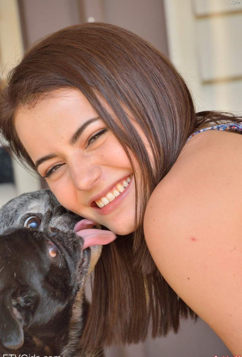 Фото горячей красотки с мопсами: она их целует, позволяет лизать себя везде, а потом задирает платье, показывает сочную киску и засовывает в нее пачку маркеров для дикого кайфа. Смотри, как она стонет от удовольствия!