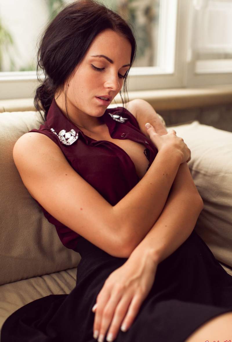 Голые фотки секретарши, что снялась на работе, а потом засветила всё дома на диване с бокалом вина. Маленькая грудь, бритая киска и попка крупно — смотри, пока не стыдно.