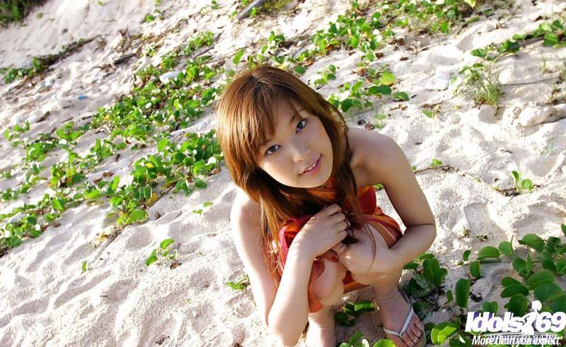 Japanese Babe Yua Aida on the Beach Showin Titties