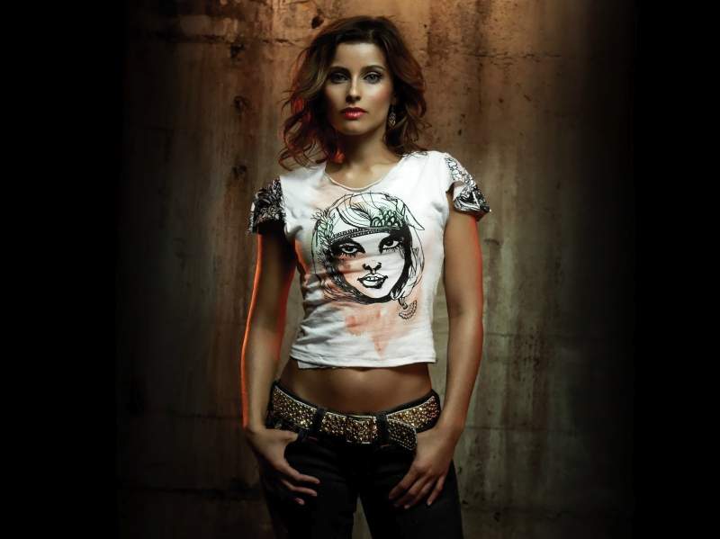 Nelly Furtado in a white T -shirt and jeans